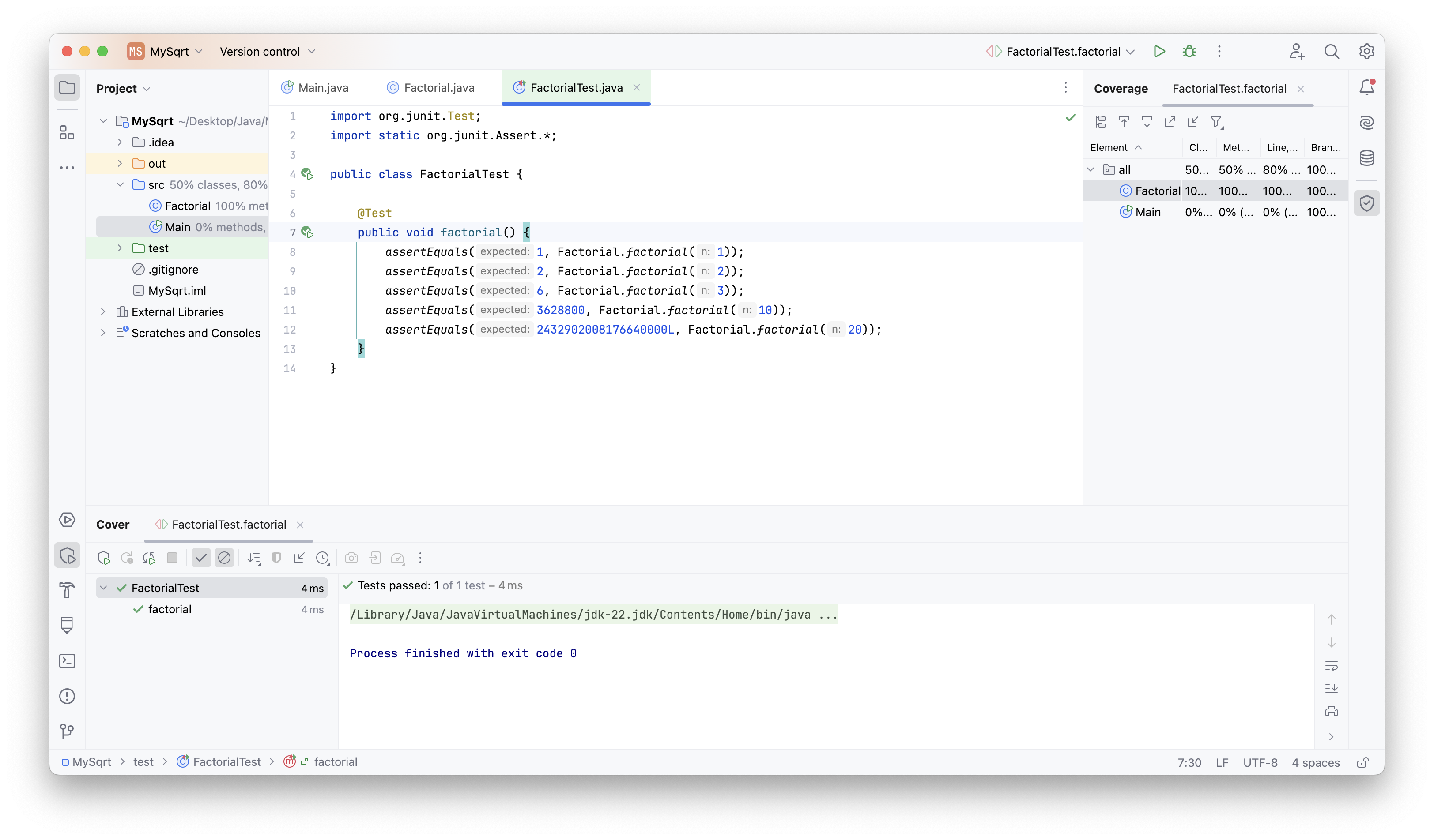 使用JUnit编写单元测试的好处: 我们可以非常简单地组织测试代码,并随时运行它们,JUnit就会给出成功的测试和失败的测试,还可以生成测试报告,不仅包含测试的成功率,还可以统计测试的代码覆盖率,即被测试的代码本身有多少经过了测试。对于高质量的代码来说,测试覆盖率 (以语句为单位) 应该在80%以上。