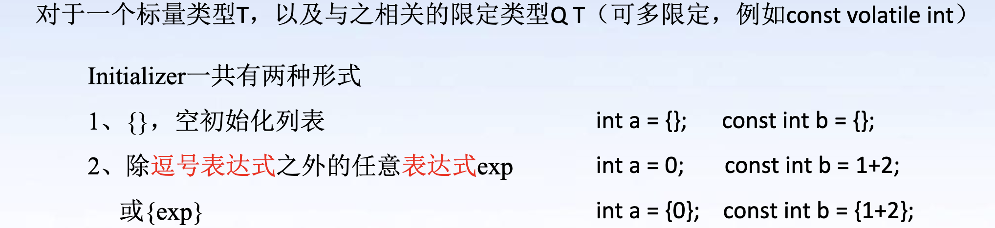 {}将对象的值设置成该类型的缺省值 (0, 空指针){exp}表达式求值之后的右值用来初始化对象表示- 很神奇, 居然可以这样