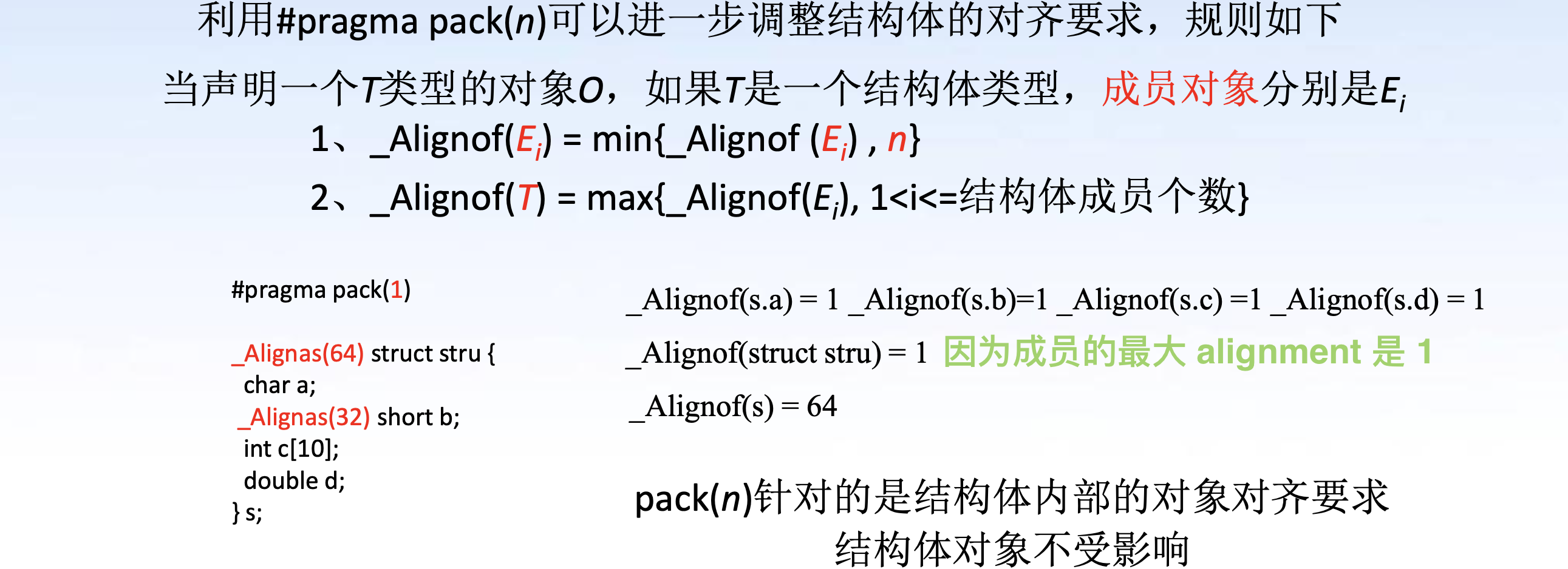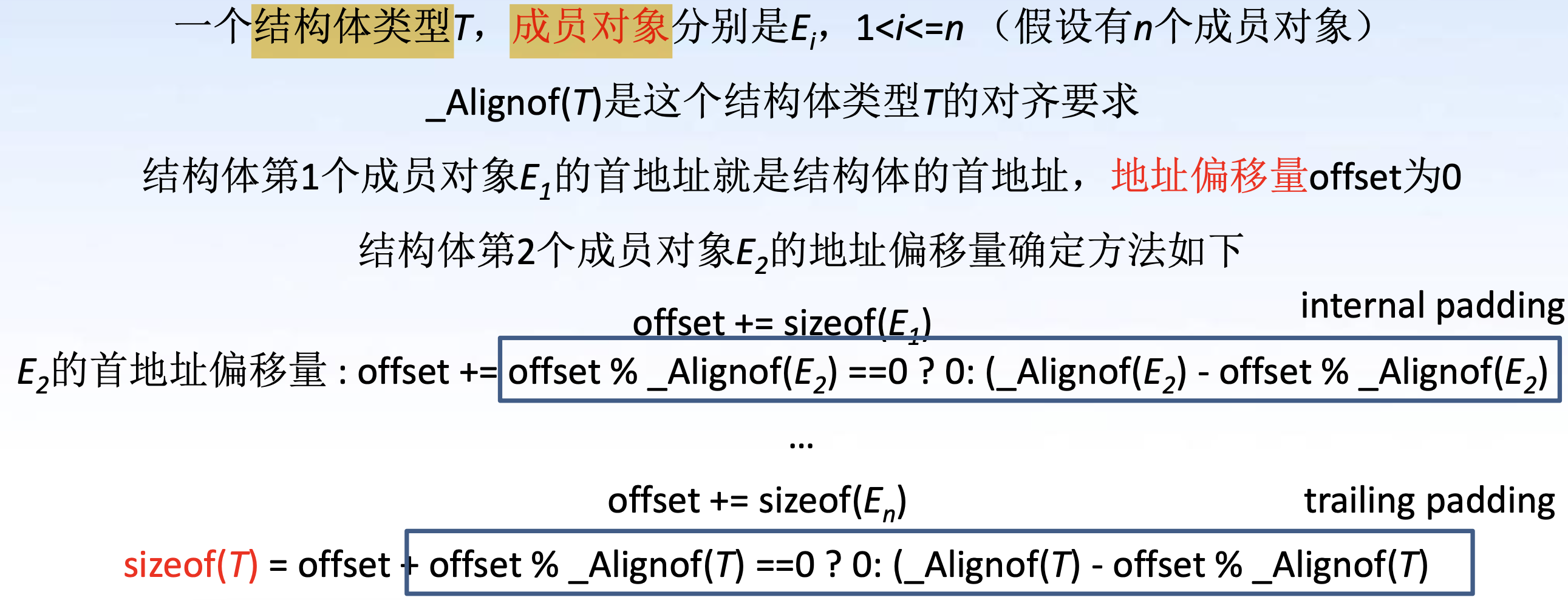 - 结构体最终的 offset 也要补到能被结构体类型的 alignment 整除