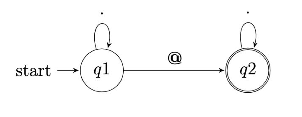finite state machine 运行机制:start \(\Rightarrow\) . 匹配 c-h-a-s-e 循环 \(\Rightarrow\) 匹配 @ \(\Rightarrow\) 匹配 163.com \(\Rightarrow\) 双线圈,结束,表达式有效