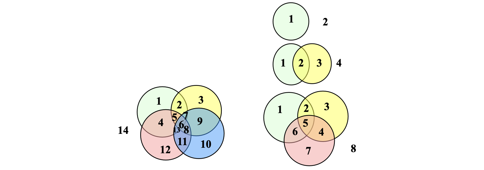 - 互相交叠是指每两个圆相交在不同的两个点上