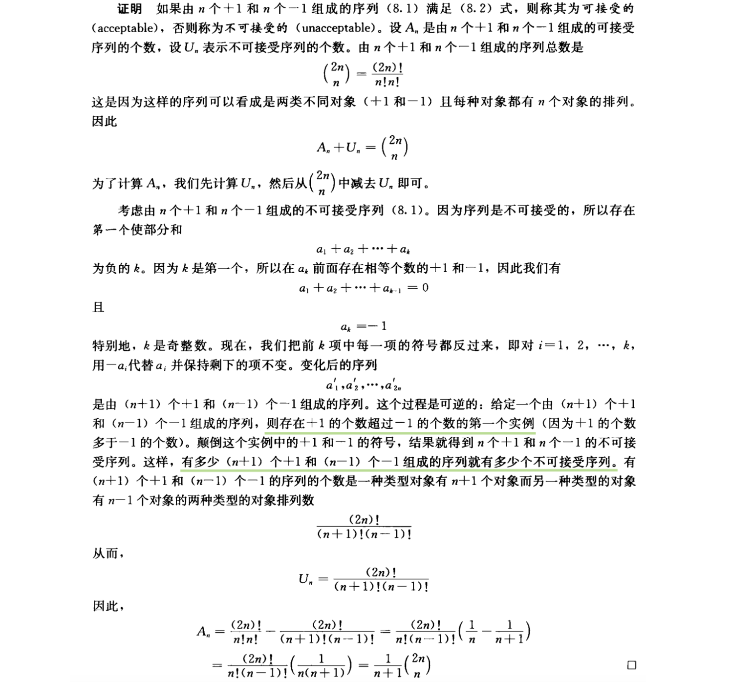定理 考虑由 \(n\) 个 \(+1\) 和 \(n\) 个 \(-1\) 构成的 \(2n\) 项序列