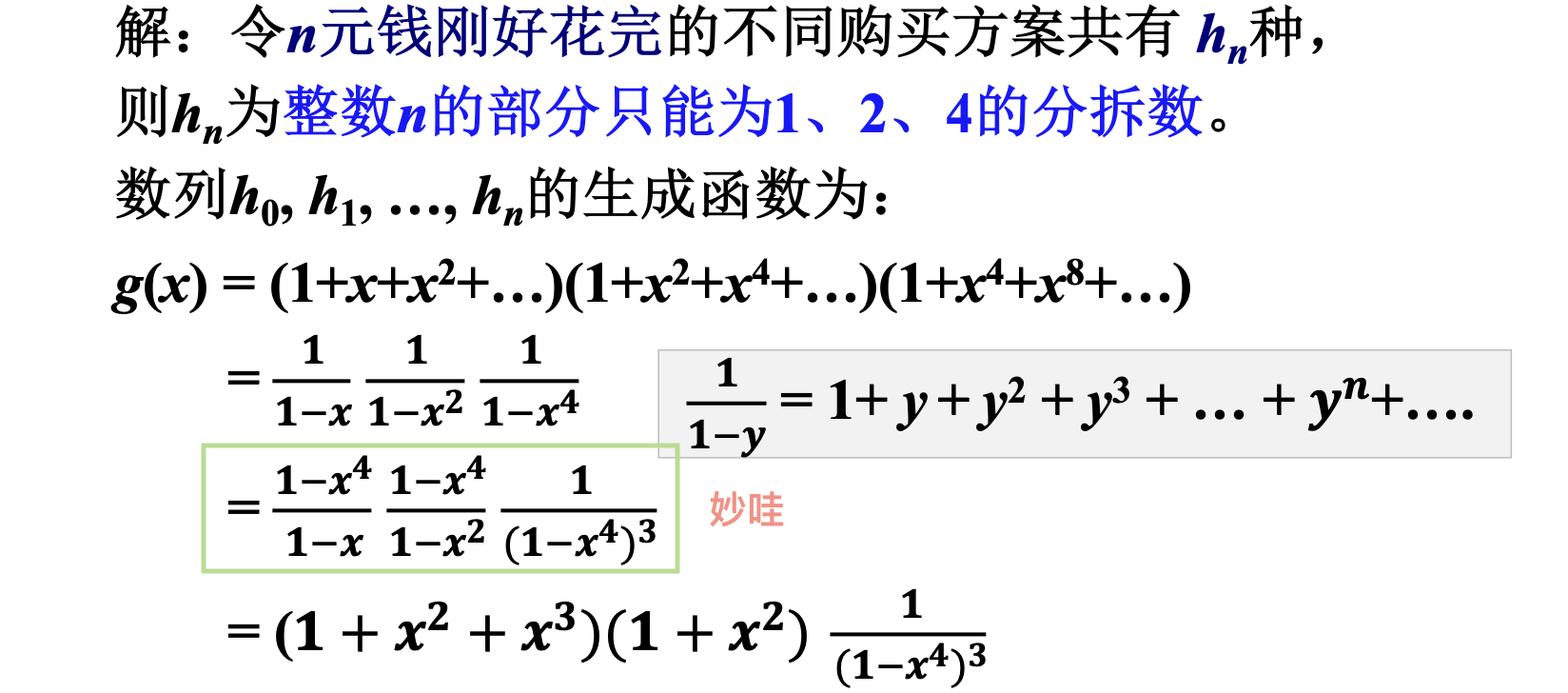 生成函数 \(g(x) = \sum\limits_{n=0}^{\infty}p_nx^n = \prod\limits_{k=1}^{\infty}(1-x^k)^{-1}\)