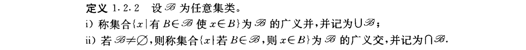 若一个集合的所有元素都是集合,则称该集合为集合族/集合的集合。比如幂集,定义为集合 \(A\) 全部子集构成的集合,记为 \(\mathscr{P}(A)\),是集合族。