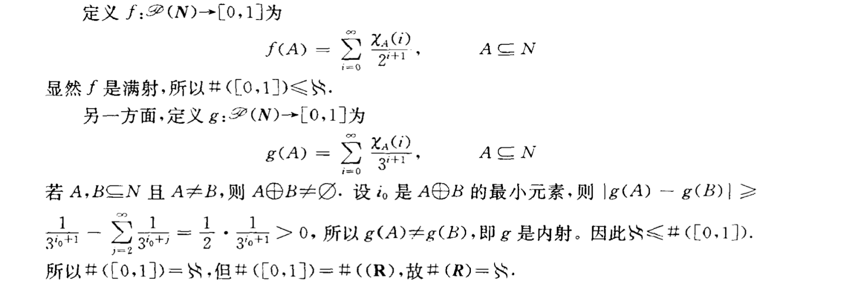 \([0,1] \sim (0,1) \sim R\),现证 \([0,1]\sim \mathcal{P}(N)\)