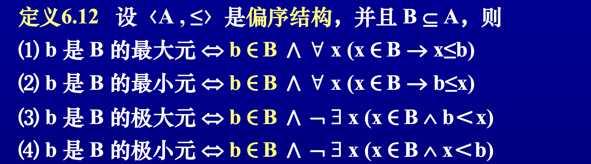 最大元要求只要在 \(B\) 中,就比 \(b\) 小,\(b\) 必须和所有元素比;极大元要求能比较的,最终 \(b\) 都比赢了