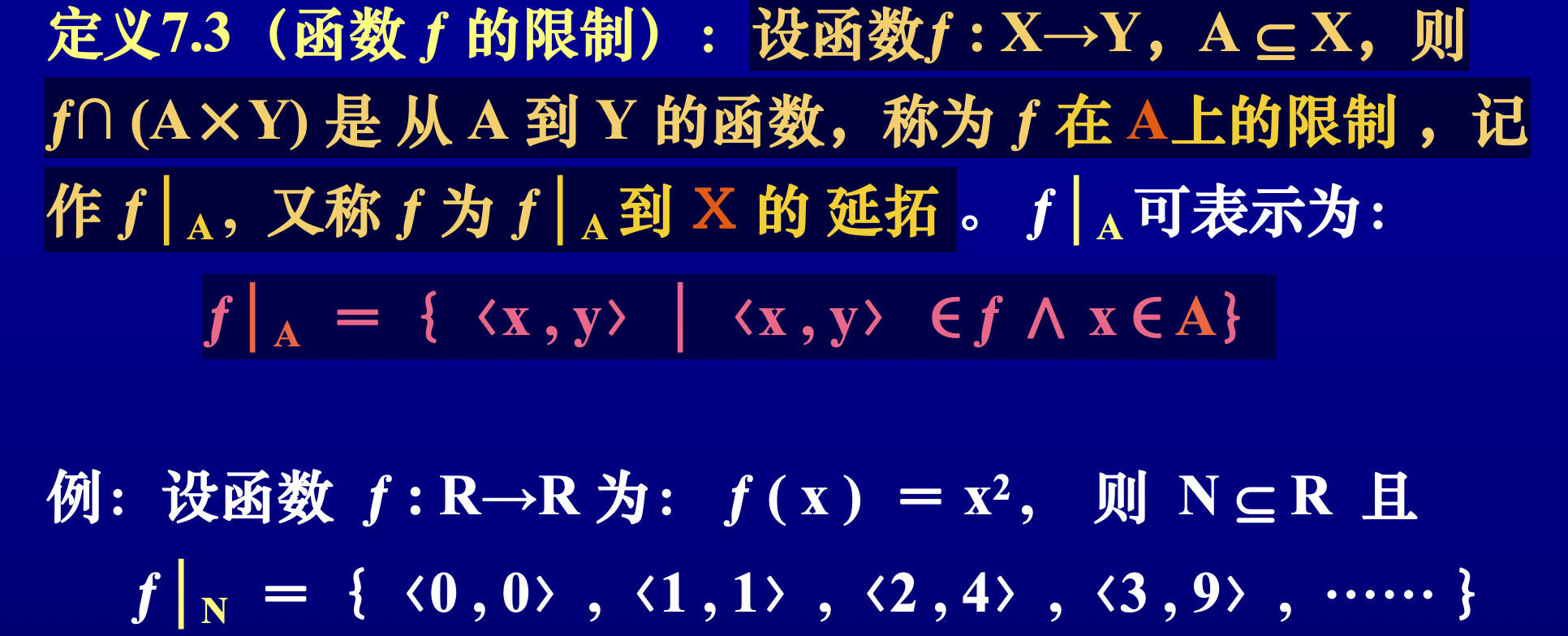 部分函数: \(f \subseteq X \times Y\),若 \(\langle x, y_1 \rangle \in f\) 且 \(\langle x, y_2 \rangle \in f\),则 \(y_1=y_2\),就称 \(f\) 为从 \(X\) 到 \(Y\) 的部分函数