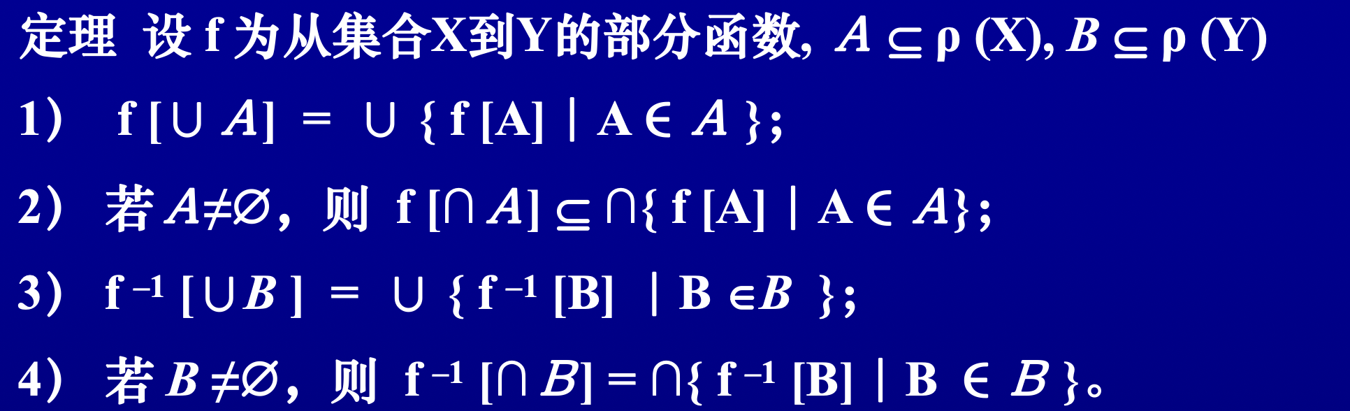 定理 若 \(B \subseteq \mathrm{ran}(f)\),则 \(B = f[f^{-1}[B]]\)