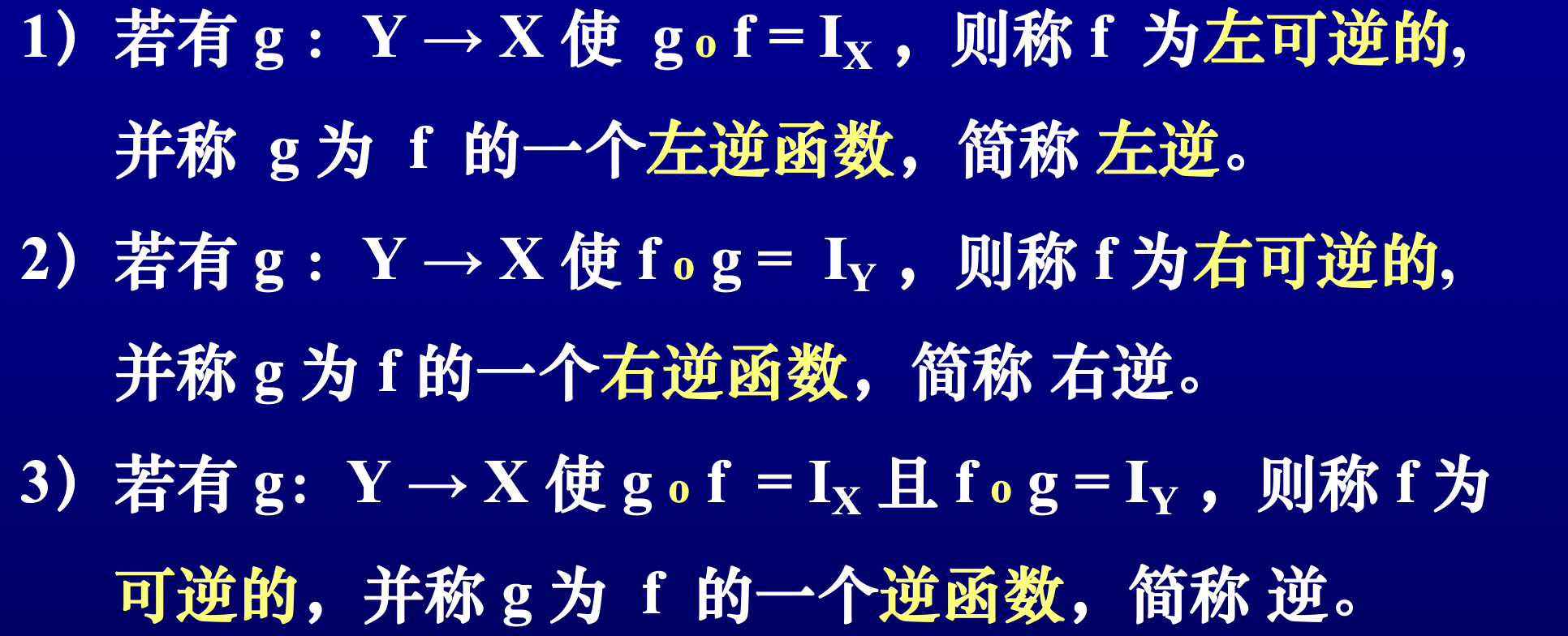 - \(f\) 的逆关系 \(f^{-1}\) 即为 \(f\) 的逆函数