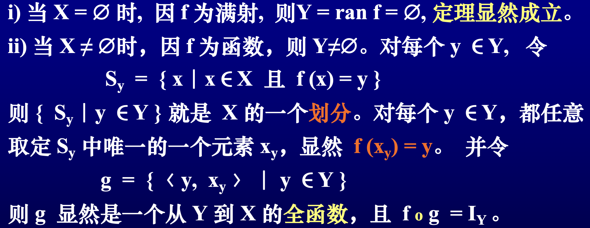 定理 \(f:X \rightarrow Y\) 为右可逆的 \(\iff f\) 为满射