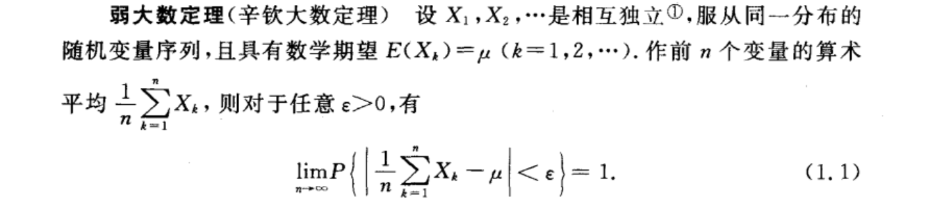 理解: 具有相同分布的独立随机变量 \(X_1, \cdots X_n\),当 \(n\) 很大时,它们的算数平均值很接近于 \(\mu\)