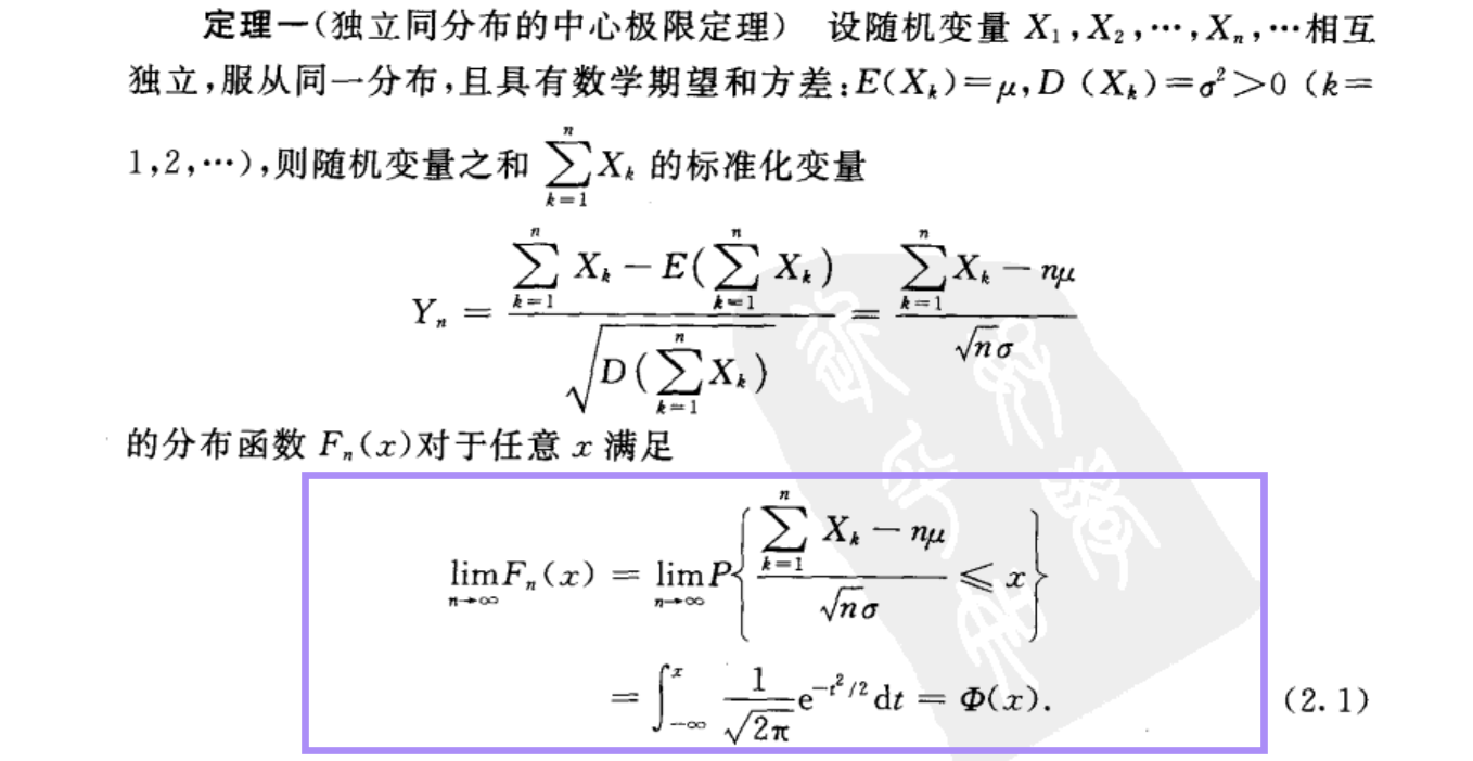理解: 具有相同分布的独立随机变量 \(X_1, \cdots X_n\),当 \(n\) 很大时,它们的算数平均值很接近于 \(\mu\)