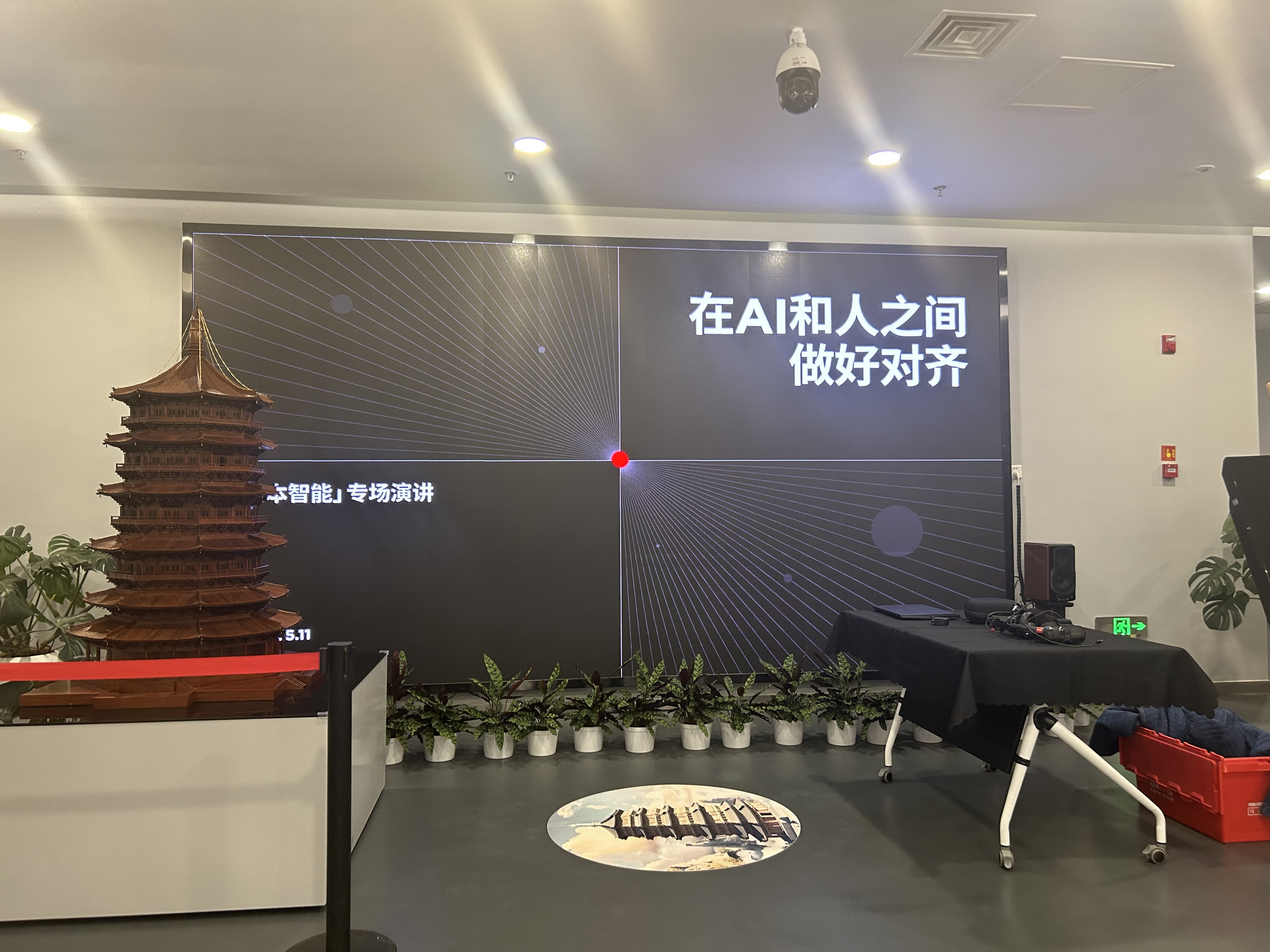 相信AI能为我们带来更多改变,能见证LLM的发展甚至亲身参与研究也是一件很酷的事情。但同时要关注人本身。“在AI和人之间做好对齐”,从自己出发,创造自己的认知体系,不要被动地接受、适应,而是主动地去引导。 $$ ---分割线1--- $$ 在后半场的时候回学校了,只看了录播。😪