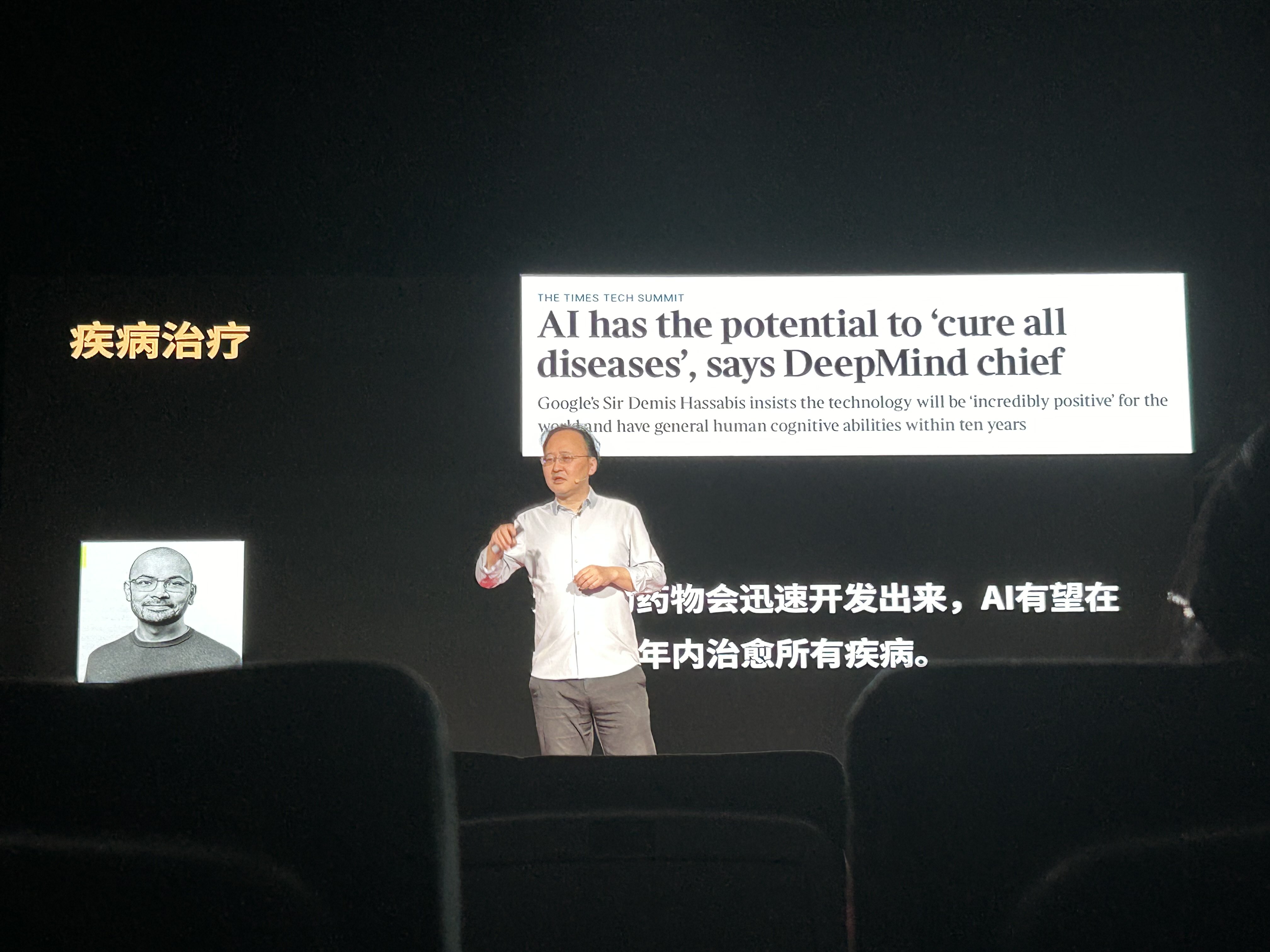 刘嘉老师讲了AI的可能应用方向。比如AI辅助教学,有研究表明,AI高度参与课堂时,学生的学习效率有显著提高,课余生活也更丰富。我自己也有这样的感觉,当我把学习资料发给AI,他就会帮我总结出重点,遇到不会的问题还可以询问他,实时而高效。另一个方向是医疗,AI有望在十年内治愈所有疾病 (Google DeepMind CEO),或许是通过类似诺奖的蛋白质预测研究出更多药物?听上去非常令人振奋。还有数字永生。